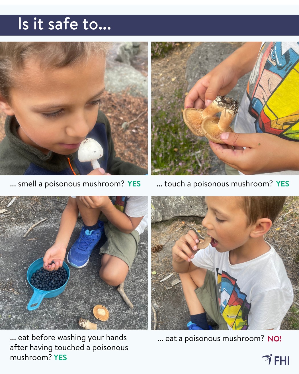 In the event of an accident, the Poisons Information Centre can help identify the mushroom if necessary and provide advice on what you should do. Retain the mushroom or remnants of what has been ingested. Make sure you have the mushroom at hand when you call. High-quality photographs can also be useful.