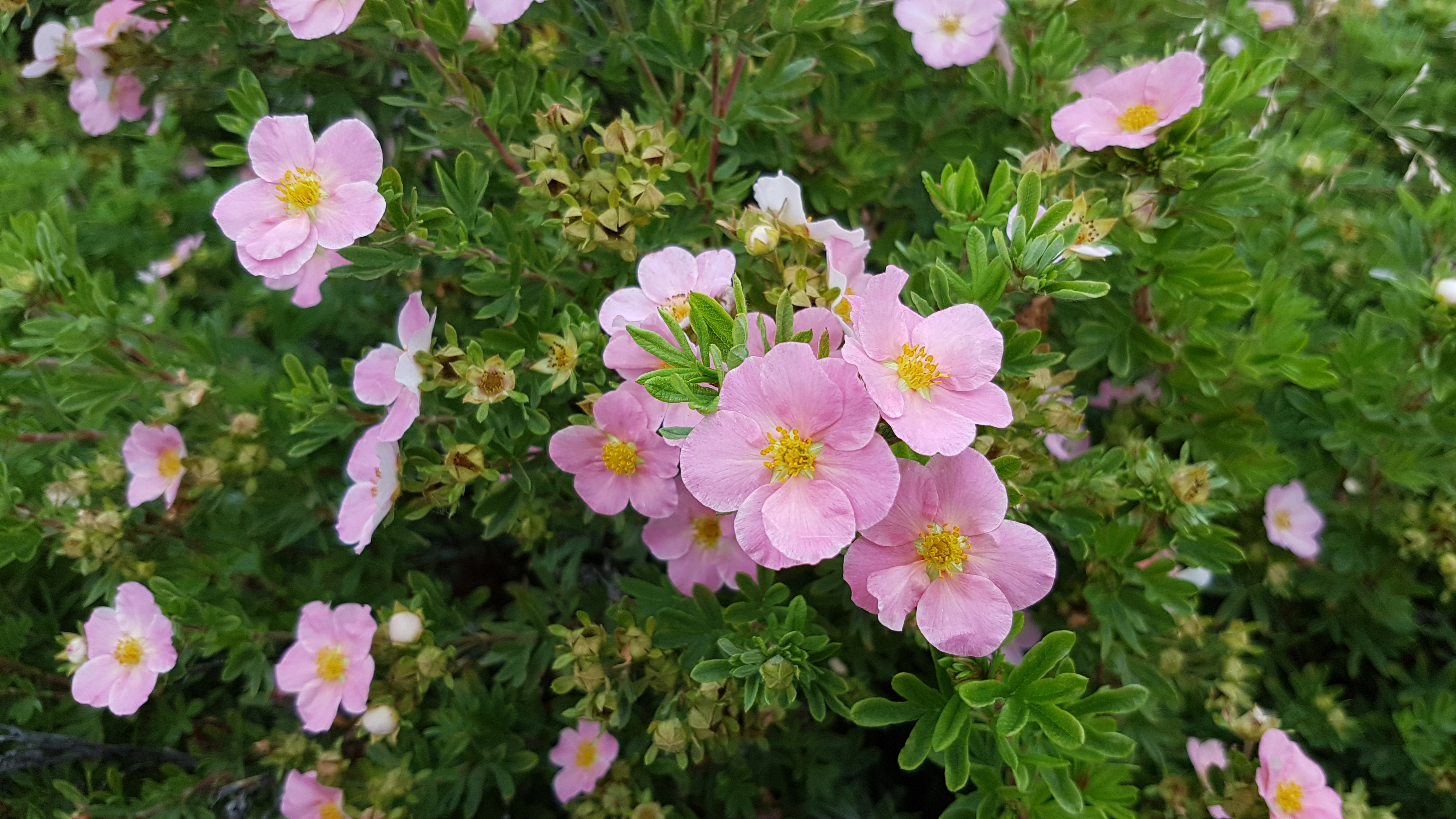 Potentilla er ein vanleg og lettstelt hagebusk. Blomane varierer i farge og er gjerne gule, kvite eller rosa.